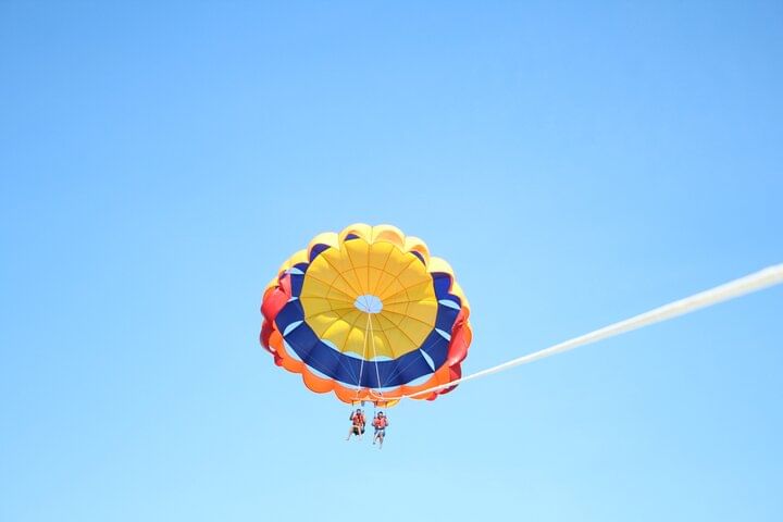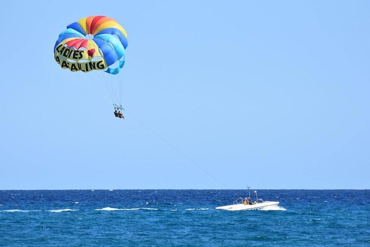 Parasailing activity start and end in boat. Your body will still dry and no need to changes suits